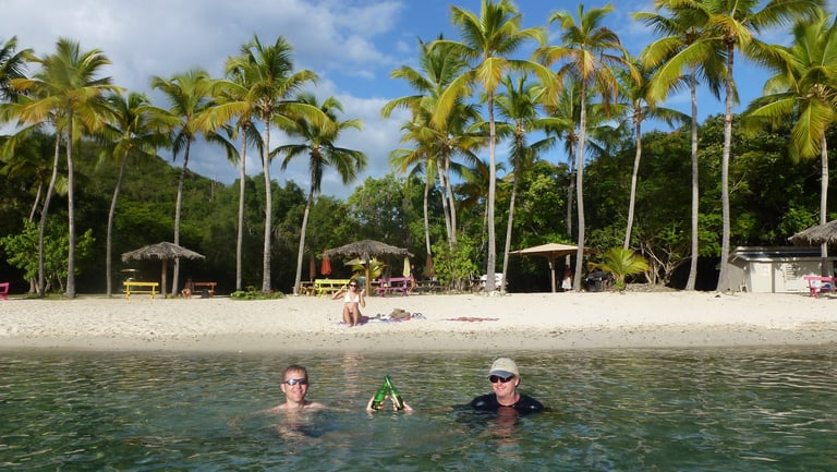 Our first stop in the U.S. Virgin Islands was Honeymoon Bay. Officially called Druif Bay, it is a beautiful, secluded natural harbor in the "fourth" U.S. Virgin Island, called Water Island. Named for its natural catchment, it was used by pirates to obtain fresh water on their way between pillaging and plundering.